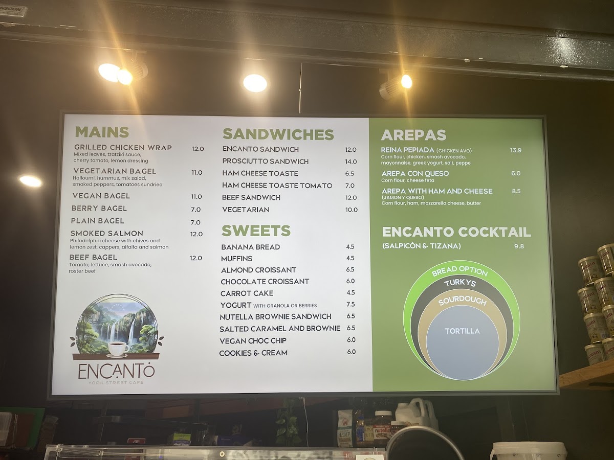 Encanto Sydney’s menu is a vibrant showcase of Latin-inspired flavors that balance comfort and creativity with every dish. The star of the lineup, Arepas, arrives golden and crisp on the outside, yet soft and pillowy inside, generously filled with a mix of savory ingredients that highlight the restaurant’s commitment to authentic taste. Complementing this, the beverage selection is equally thoughtful, with the Oat Flat White standing out for its smooth, creamy texture and perfectly balanced espresso, making it a favorite for both casual coffee lovers and aficionados. Small bites and sides maintain the same high standard, pairing fresh ingredients with bold seasonings that keep each bite lively and satisfying. Overall, the menu at Encanto Sydney demonstrates a careful attention to flavor, presentation, and variety, ensuring that whether one is indulging in a hearty main or a comforting coffee, every choice delivers a memorable taste experience.